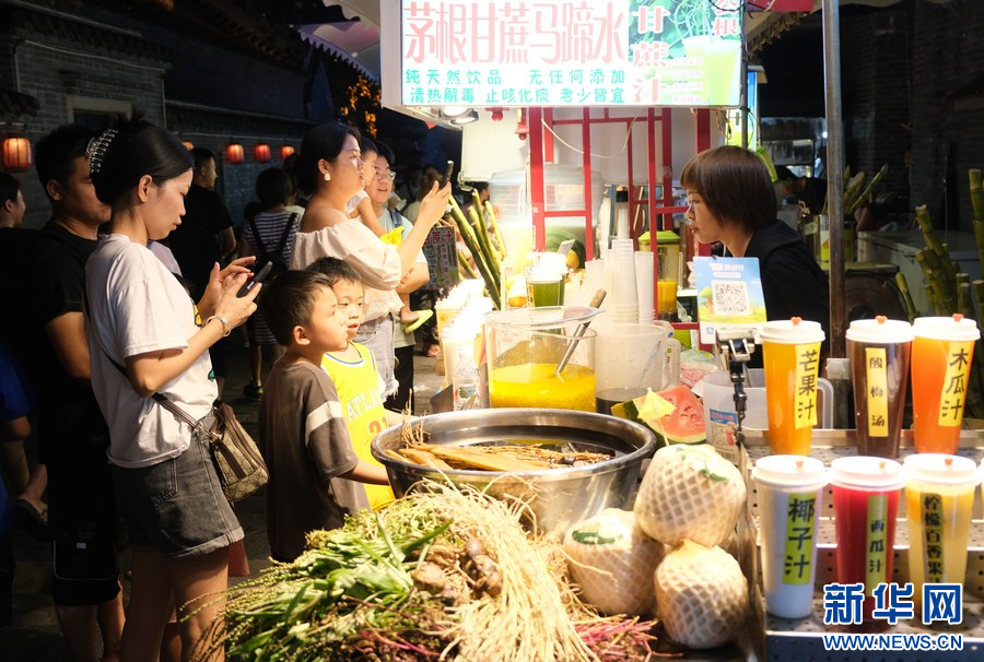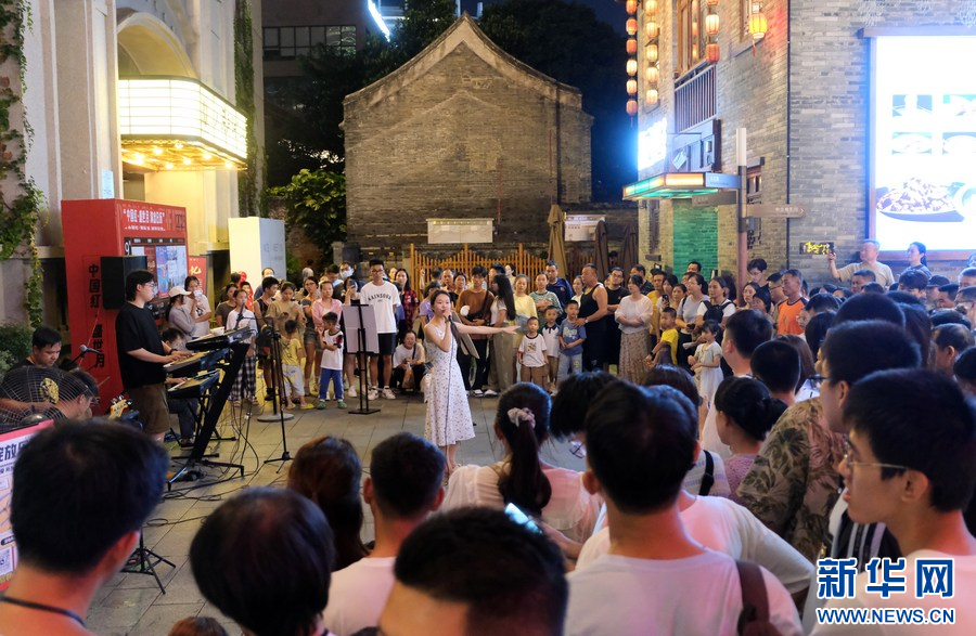 10月4日,消费者在广西南宁市三街两巷观看演出。新华社记者 陆波岸 摄