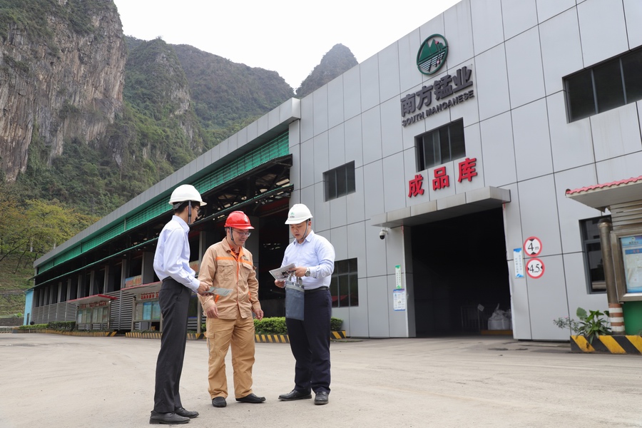 农业银行崇左分行客户经理到南方锰业了解生产经营情况(黄梦莹 摄)