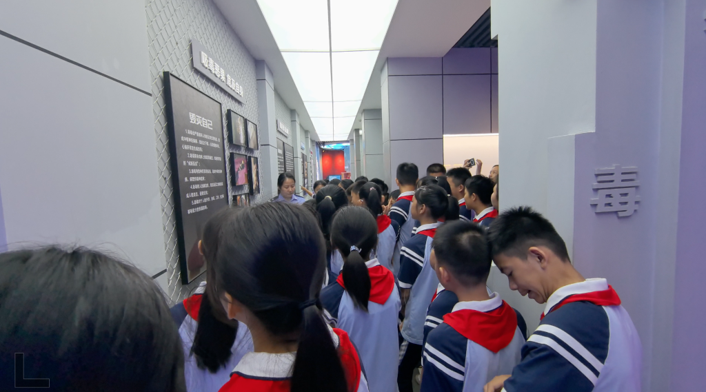 学生在参观北流市禁毒教育基地。(记者梁舜)