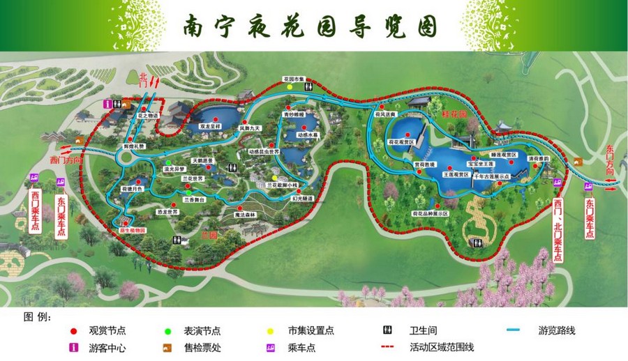 为了让大家有一个美好的观赏体验,特意准备了一份豪华版“南宁夜花园”游客服务指南,你想了解的信息都在这里啦!赶紧收藏!