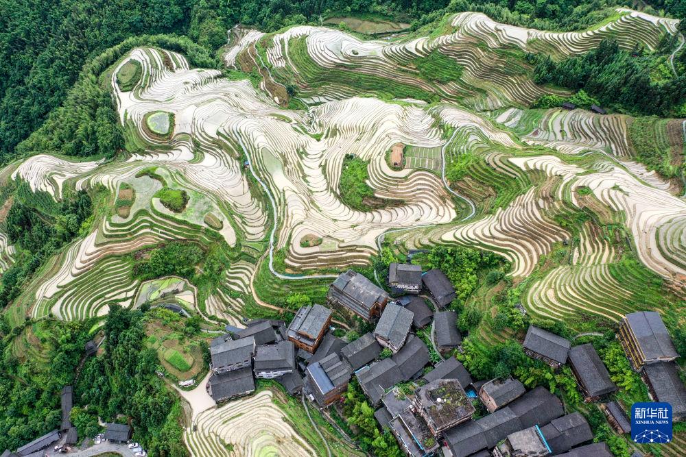 广西龙胜各族自治县龙脊镇大寨村龙脊梯田的夏日景色。资料照片