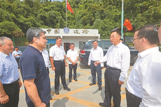 8月18日,自治区党委书记刘宁深入崇左凭祥中越智慧口岸项目建设现场,调研项目总体规划、通关便利化以及口岸自动化、信息化建设等情况。 何学俏/摄