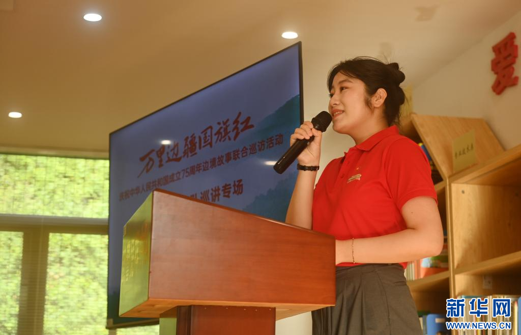 9月24日,在广西凭祥市,来自南宁师范大学的王婧怡在进行巡讲。新华社记者 陆波岸 摄