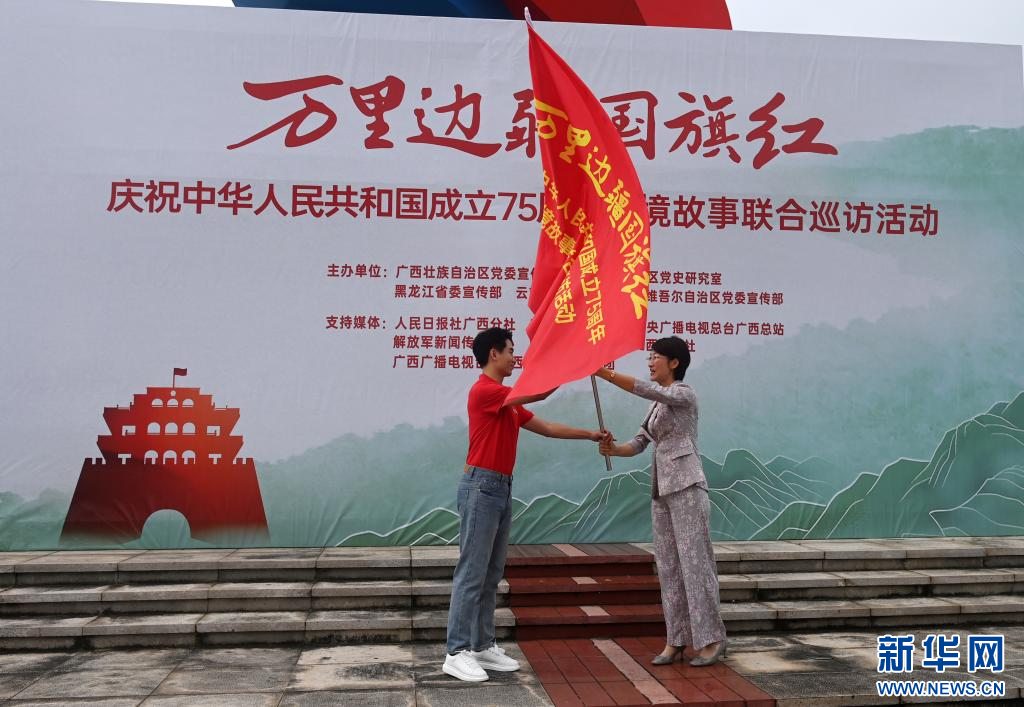 新华网南宁9月25日电(记者 陆波岸) 万里边疆,因国旗辉映更显巍峨壮丽;边境故事,随祖国发展更加精彩纷呈。9月23日至25日,由广西、黑龙江、云南、新疆4省(区)党委宣传部共同举办的“万里边疆国旗红——庆祝中华人民共和国成立75周年边境故事联合巡访”活动,第一站联合巡访活动在广西开展。