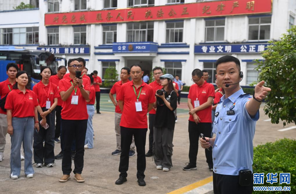 9月23日,巡访活动参加人员在广西东兴边境派出所听取有关情况介绍。新华社记者 陆波岸 摄