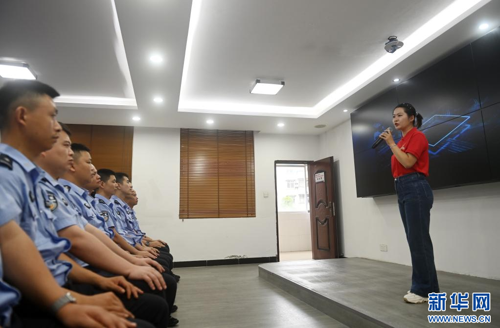 9月23日,在广西东兴边境派出所,来自云南省楚雄州融媒中心的周永燕在进行巡讲。新华社记者 陆波岸 摄