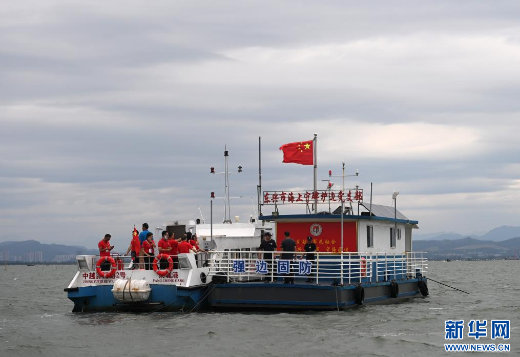 9月23日,巡访活动参加人员到广西东兴市海上守碑护边党支部了解情况。新华社记者 陆波岸 摄