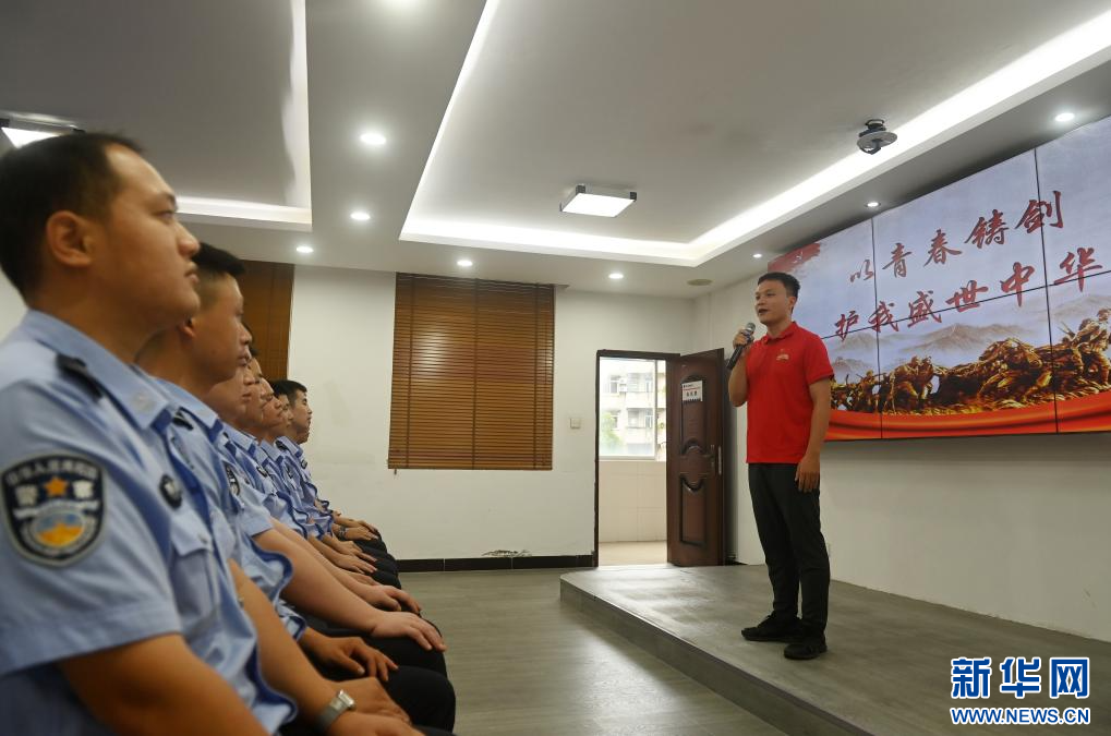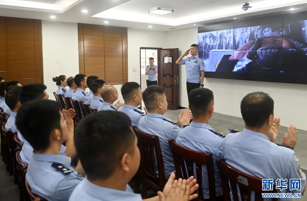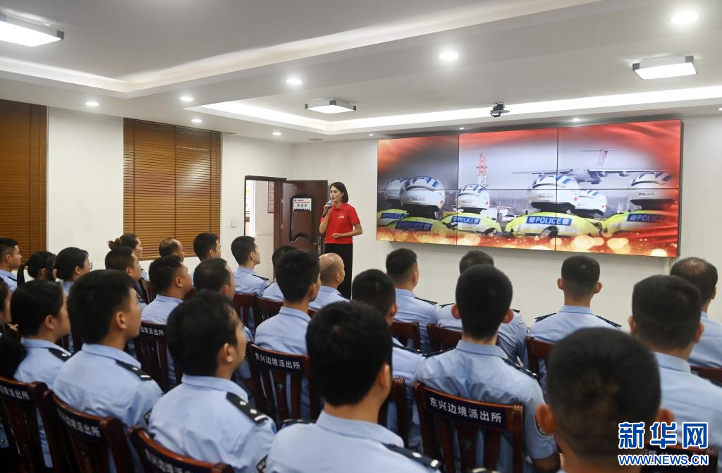 9月23日,在广西东兴边境派出所,黑龙江省大兴安岭地区漠河市北极边境派出所民警史先强在进行巡讲。新华社记者 陆波岸 摄
