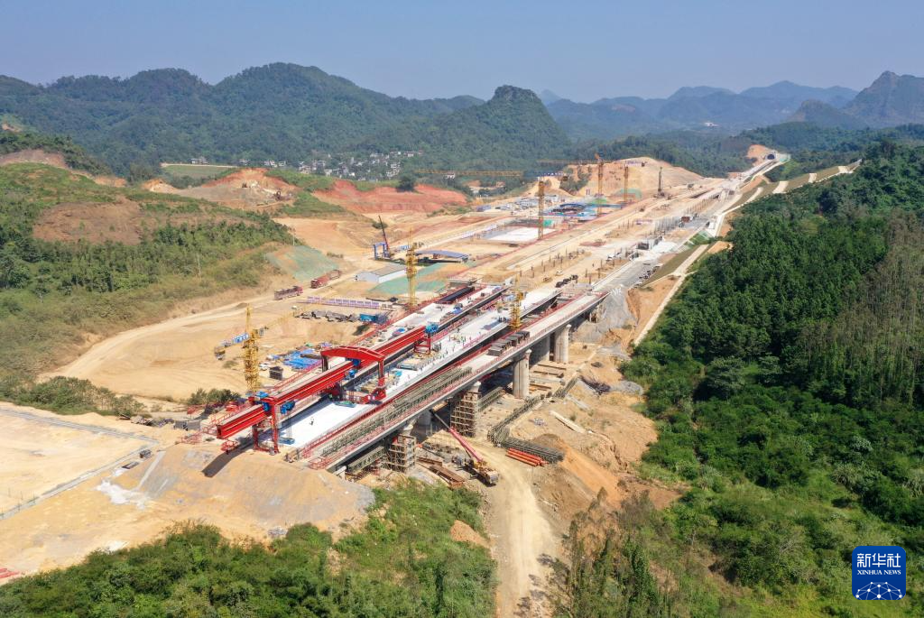 这是南凭高铁凭祥东站及周边线路(10月11日摄,无人机照片)。