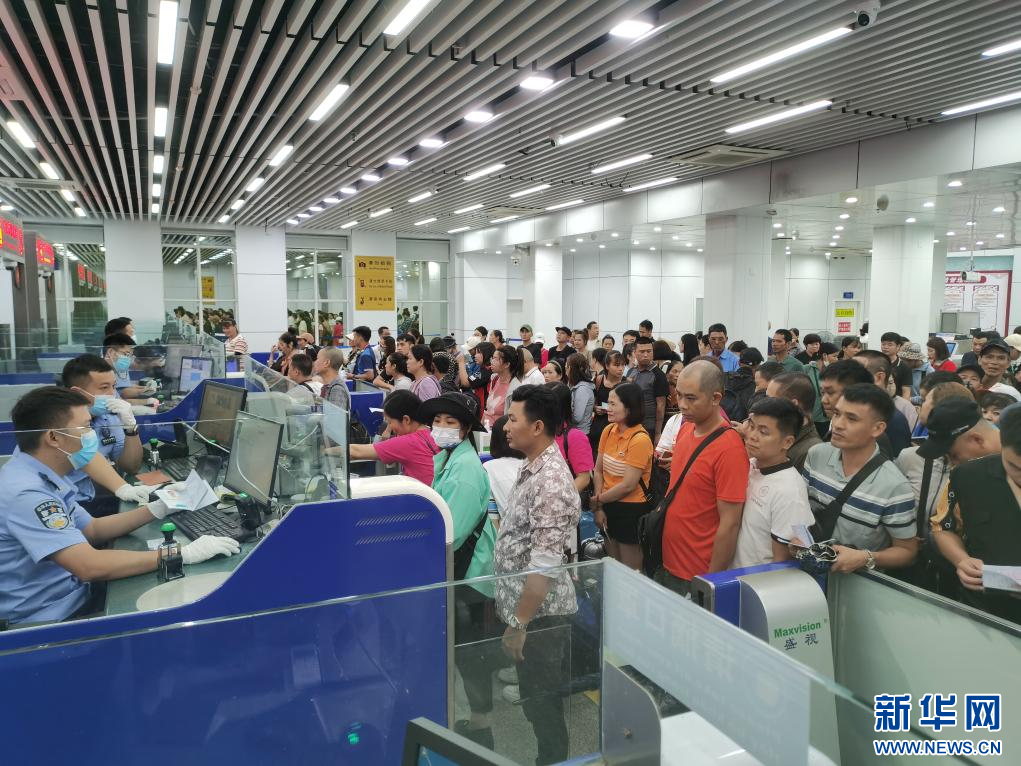 6月11日,旅客在东兴口岸(一桥)入境大厅接受入境边防检查。(黄浩铭 摄)