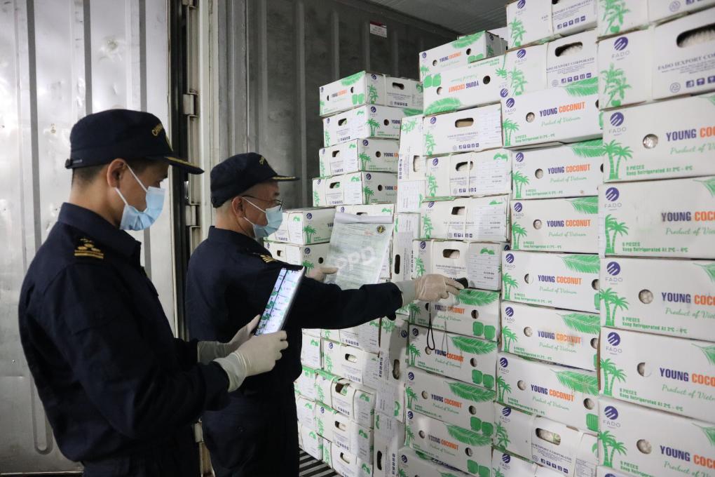 凭祥海关监管一科科长刘燕萍表示,为确保该批货物顺利进口,凭祥海关靠前服务,提前了解企业进口计划,加强与铁路部门联系配合,实行“7×24小时”预约通关,发挥进境水果“绿色通道”作用,在严格监管的前提下保障越南鲜食椰子高效通关。