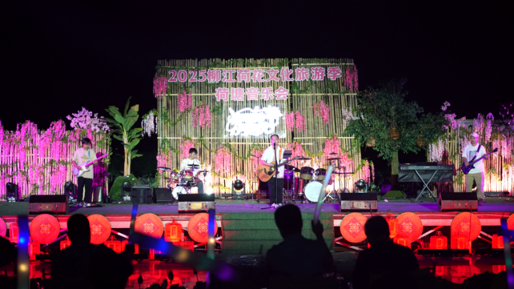7月19日晚,柳州市柳江区“荷风乐动·声夏时光”荷花文化旅游季在百朋镇荷苑景区启幕。