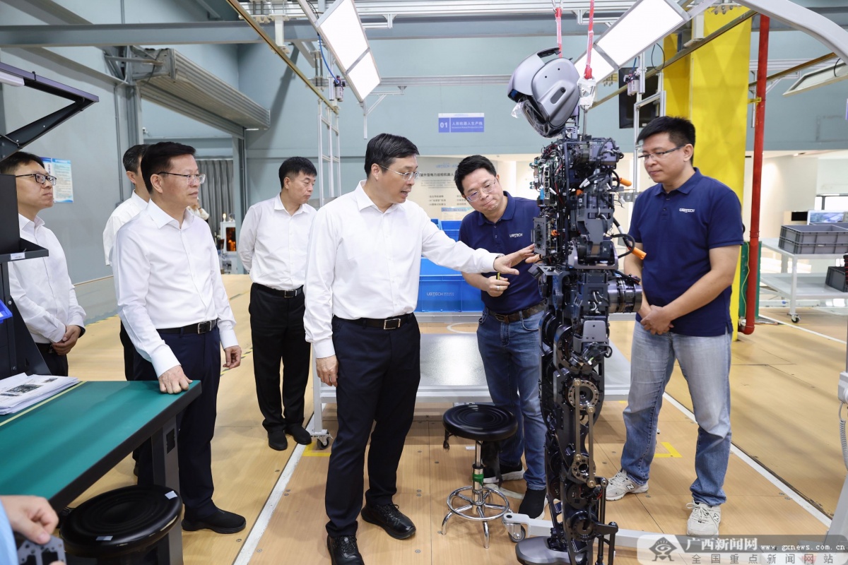 柳州优必选智能科技有限公司是柳州市培育机器人产业集群以及推动产业智能化升级方面的代表企业,以工业4.0标准打造“机器人制造机器人”的无人化示范生产线。韦韬走进工业版人形机器人生产线,详细了解企业产品应用、技术创新和战略布局情况。他指出,柳州是制造业重镇,汽车、机械装备等产业为人工智能技术提供了丰富应用场景,希望企业聚焦前沿技术领域、聚焦广西产业需求,推动“人工智能+”赋能千行百业。自治区政府将全力支持企业在桂发展,各有关部门和柳州市要积极营造宽松包容的创新环境,在政策扶持、金融支持、产业配套、人才培养等方面协同发力,加大要素资源供给,使人工智能产业成为我区经济发展的新增长点。