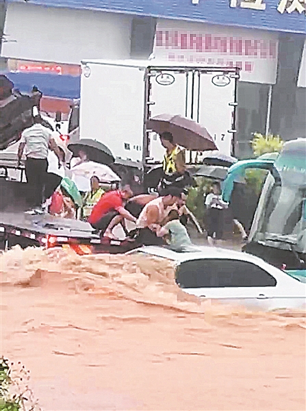 “抓住我的手!”吴绪乾立刻将手臂伸进车窗,死命拽住一位中年男子胳膊往外拉。随车吊上的同事苏战华、李发志与两名热心群众则迅速接应,5个人合力将男子拽过随车吊……没有部署和演练,他们配合默契,在洪水中搭起了一座横跨生死的“生命之桥”。