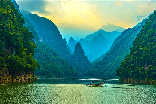走进百色市乐业县,只见群山嵯峨,林海苍翠,云雾缭绕,溪河奔流,凉意袭来,将无边炎热屏蔽在外。乐业县城海拔970米,是广西海拔最高的县,这个夏季平均气温一直都定格在20~22℃。