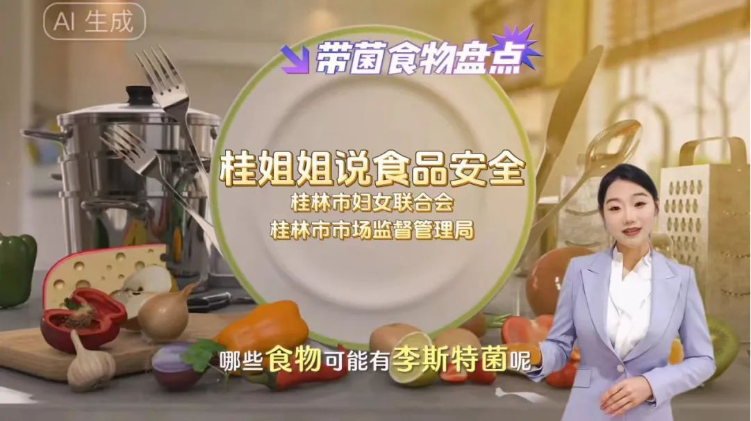 “桂姐姐”AI数字人进行食品安全科普。“巾帼桂林”科普视频截图