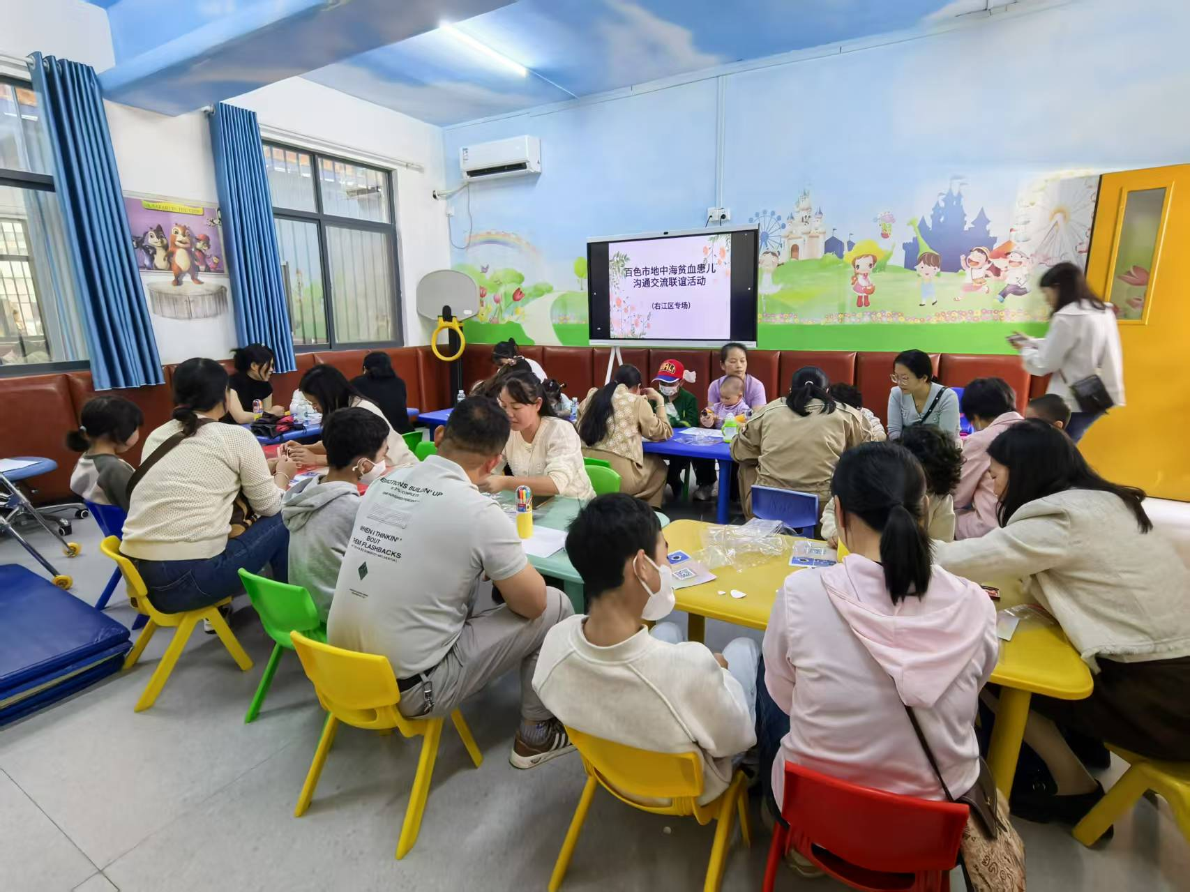 河池市“爱心妈妈”一对一和地贫孩子家庭沟通交流,做手工。