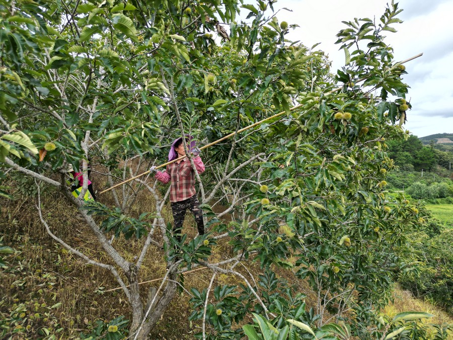 “我家种了10多亩板栗,亩产700公斤,按收购价8块钱一公斤,供不应求。而且每年都有商贩上门求购,都不够卖。”苍板村村民潘唐宁说。