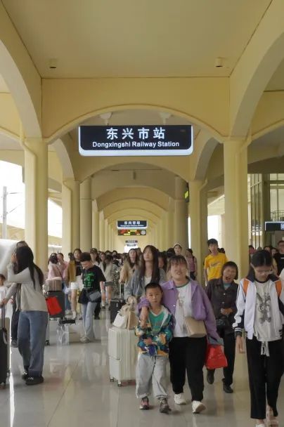 乘坐动车来到东兴市