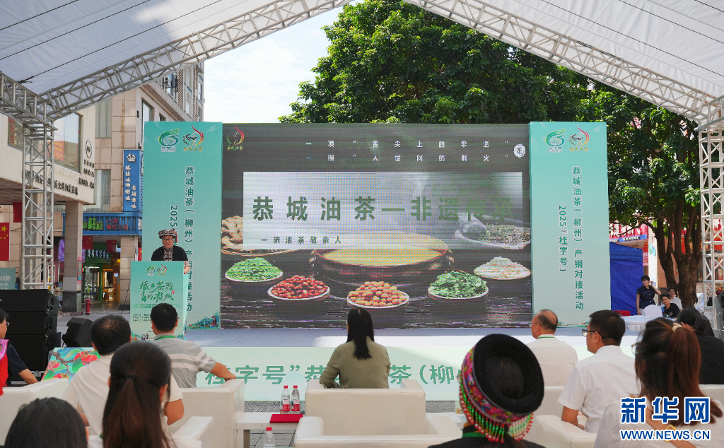 新华网南宁9月28日电(蔡思彦)27日,2025年“桂字号”恭城油茶(柳州)产销对接活动在广西柳州市举办。本次活动以“瑶乡茶韵 香约龙城”为主题,旨在聚焦柳州及周边市场,深入推广恭城油茶这一非物质文化遗产,促进两地饮食文化交流,拓展油茶市场渠道,整合产业链资源,助力地方特色产业发展与乡村振兴。
