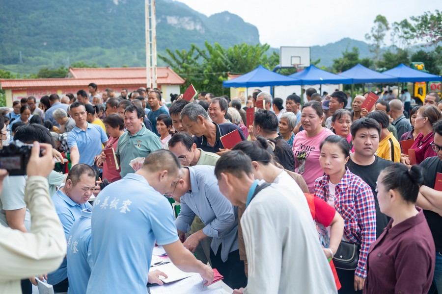 秋色染壮乡,丰收悦民心。9月29日,在国庆来临之际,广西河池市金城江区五圩镇板銮村举办股份经济合作社成员分红大会暨最美家庭分享会,全村11个屯共1317名股民共分红26.34万元(含147户脱贫户)。