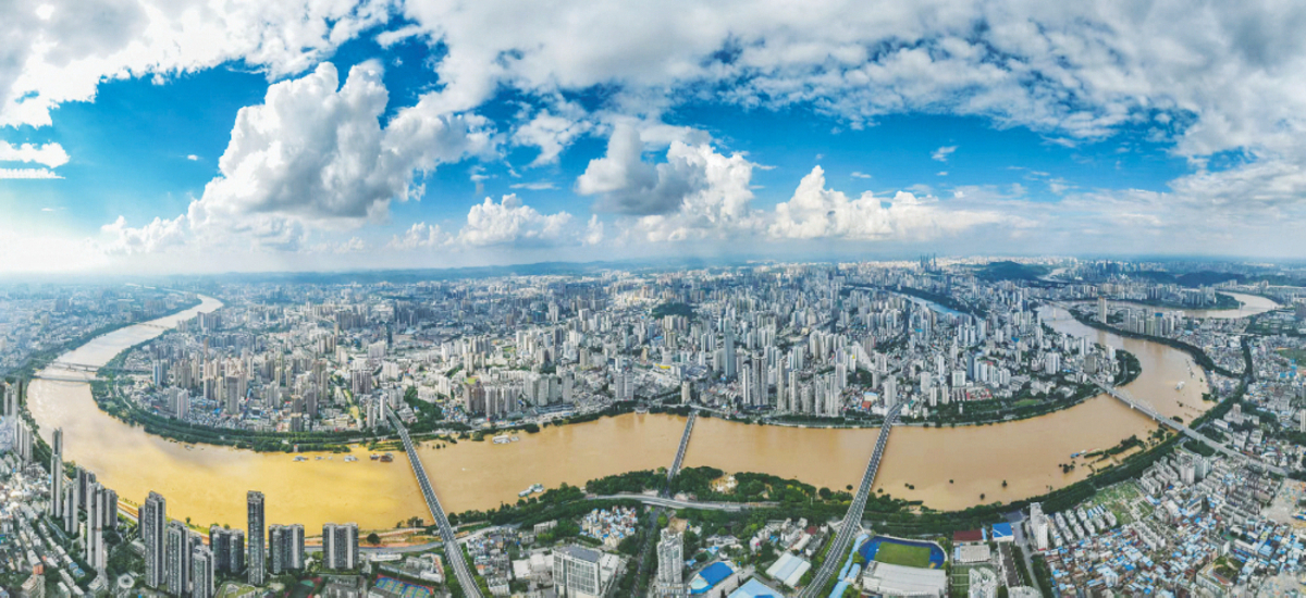 10月3日,邕江持续高水位运行。(彭寰 摄)