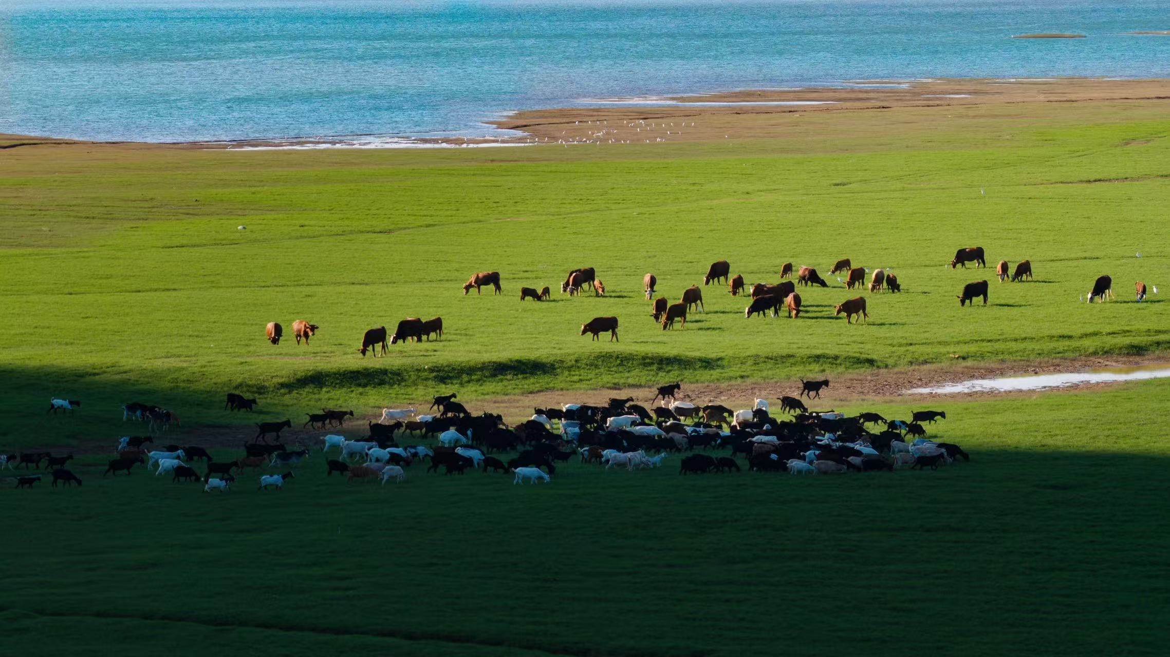 金鸡湖大草原牛羊成群。邱岗诚摄