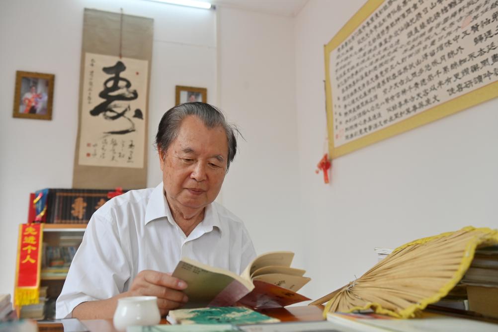 10月15日,罗伏龙在广西巴马瑶族自治县县城的家里看书。新华社记者陆波岸 摄