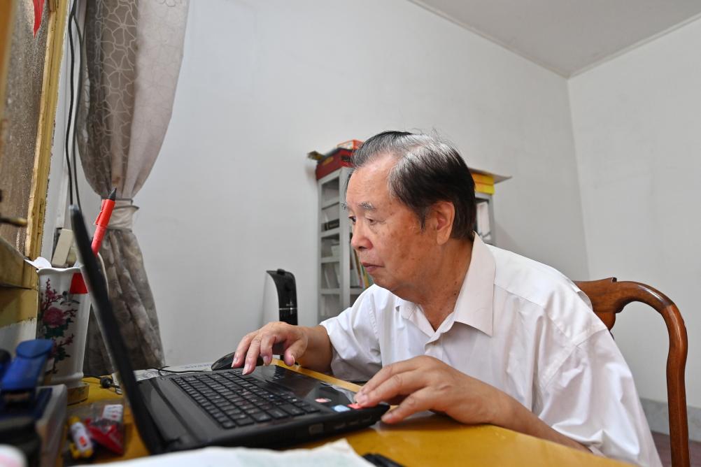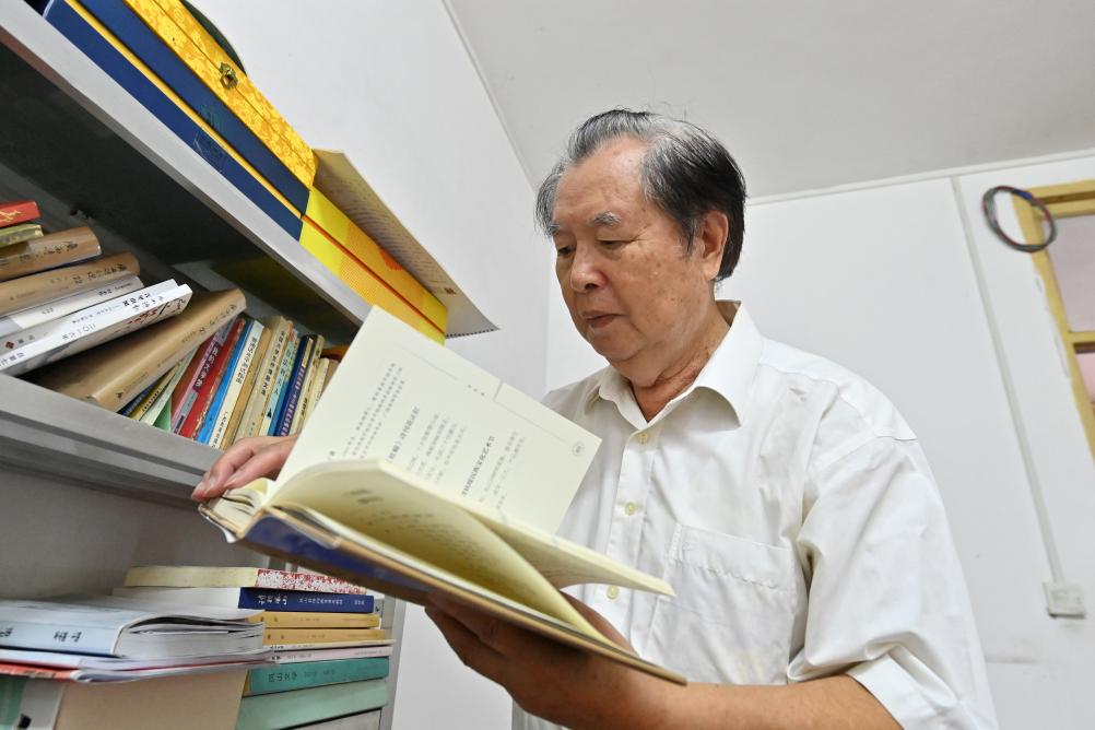 10月15日,罗伏龙在广西巴马瑶族自治县县城的家里查阅有关资料。新华社记者陆波岸 摄