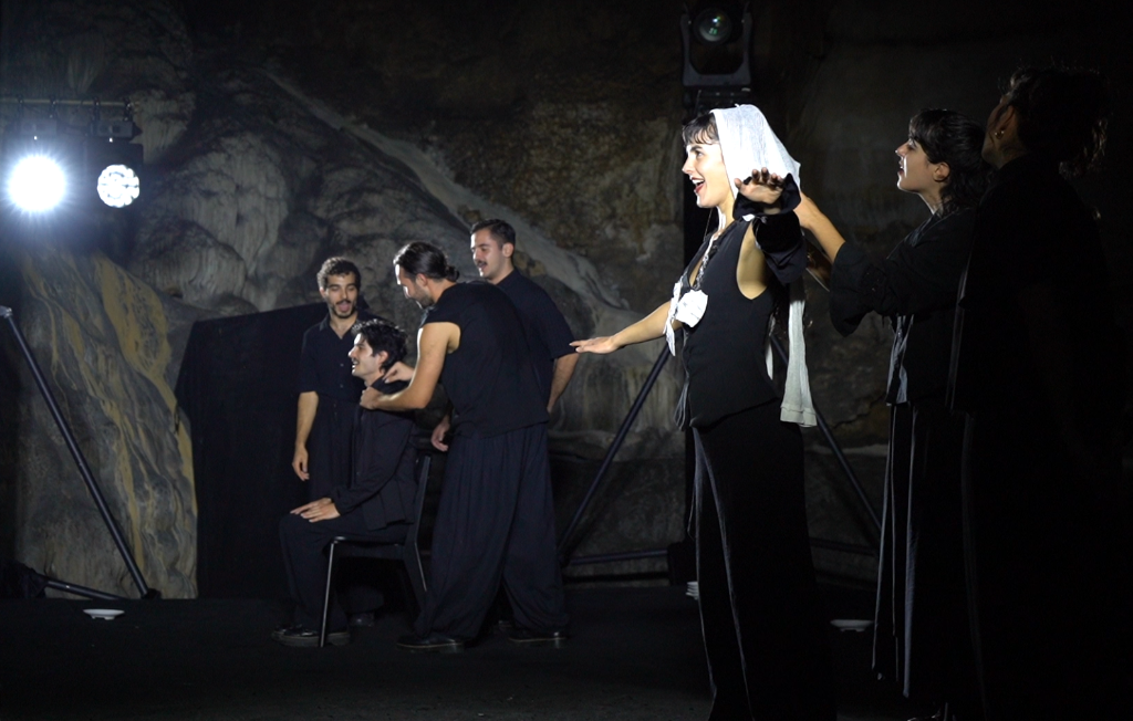 希腊雅典音乐戏剧学院创排的戏剧《俄耳甫斯与欧律狄刻》在桂林七星岩洞里上演。(刘峥 摄)