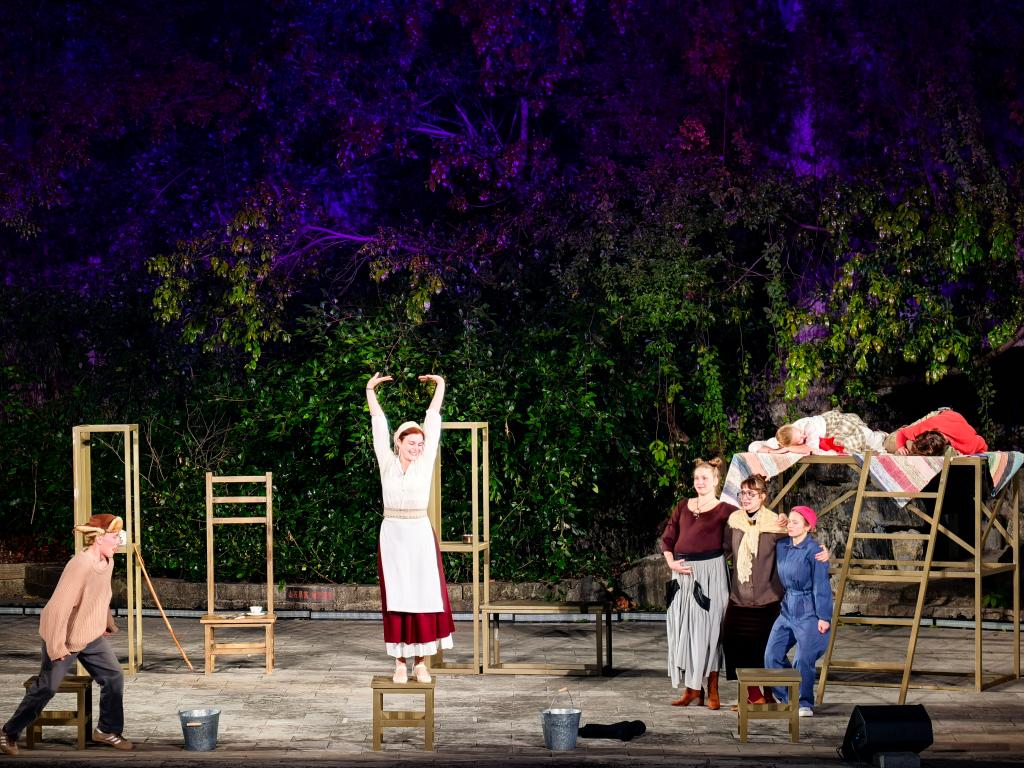 在桂林市虞山公园,俄罗斯戏剧艺术学院创排的戏剧《一个简单的故事》在此上演,树木、石山均为公园实景。(受访者供图)