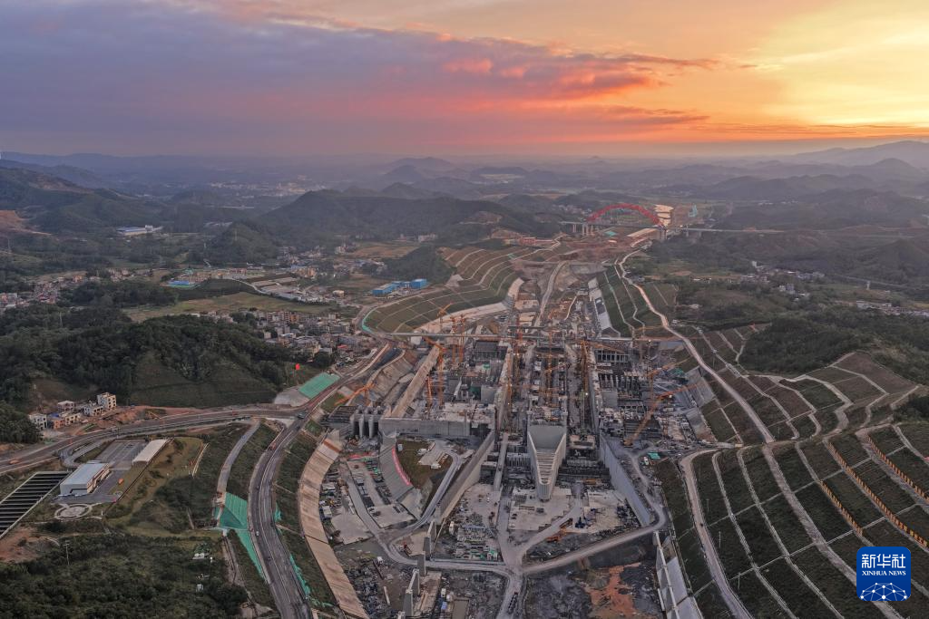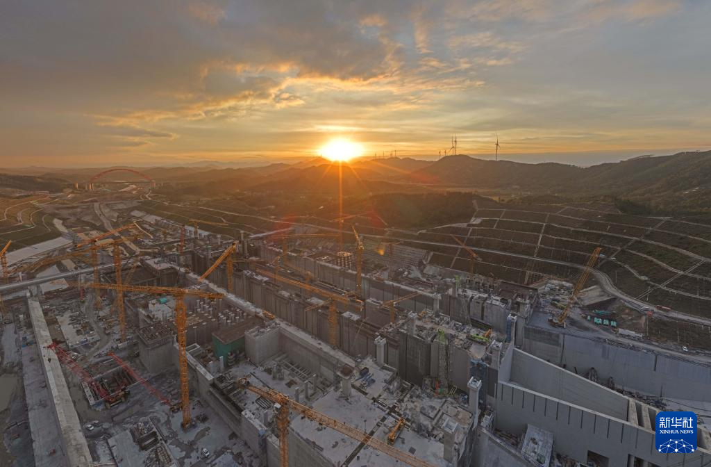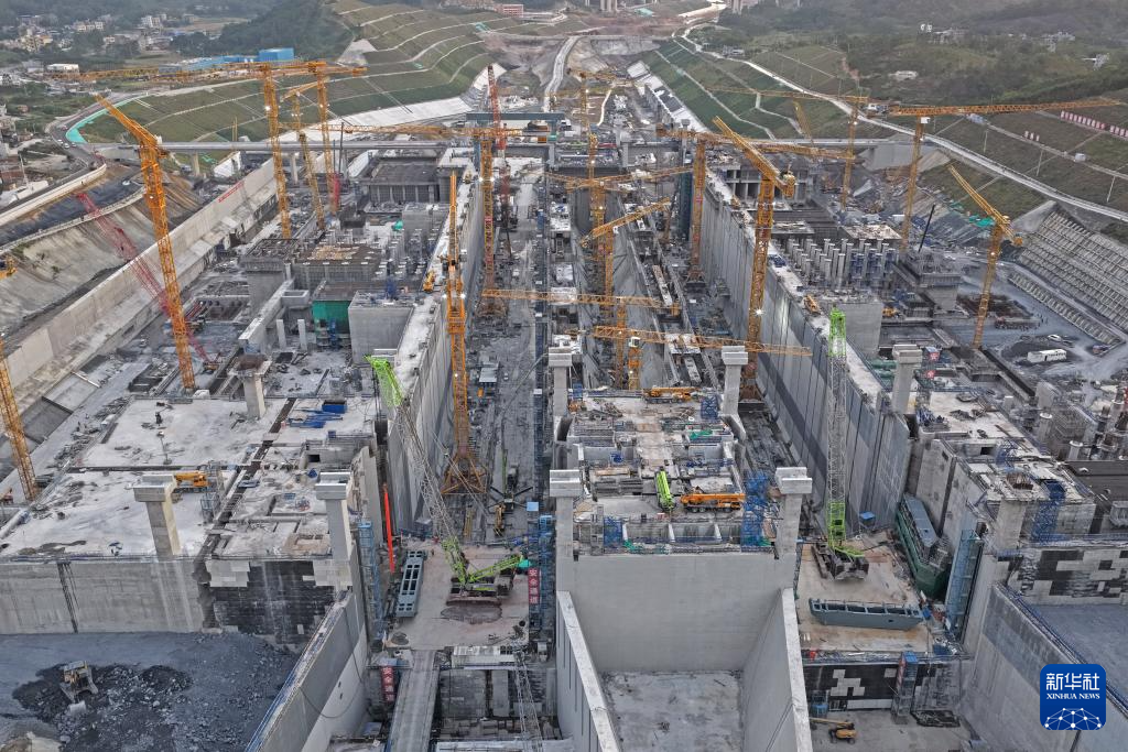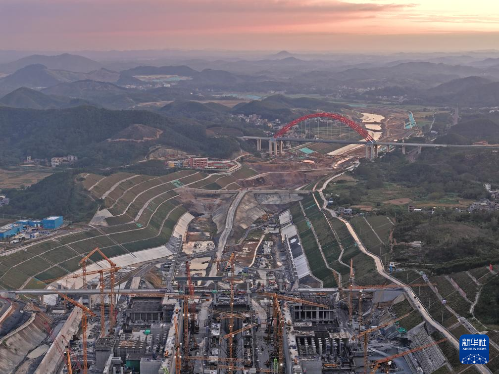 这是11月11日拍摄的广西平陆运河马道枢纽施工现场(无人机照片)。