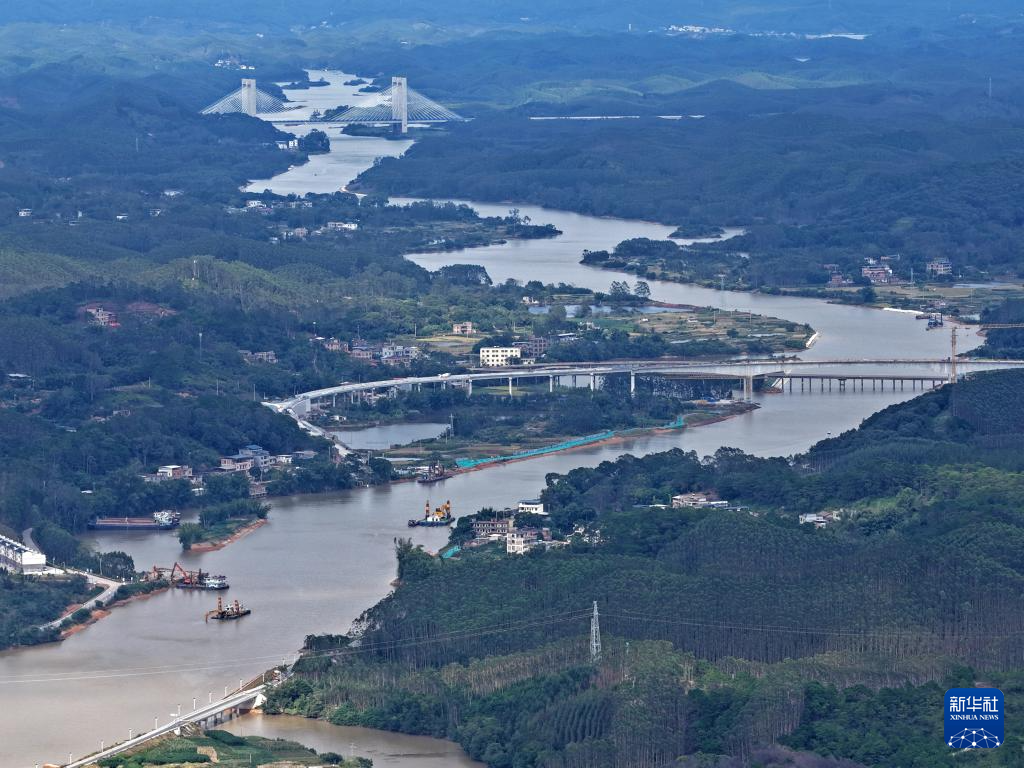 这是11月11日拍摄的广西平陆运河航道施工现场(无人机照片)。
