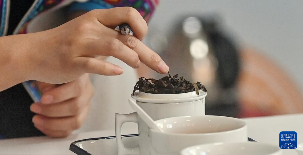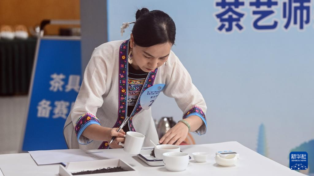 11月12日,在广西工业技师学院,一名选手在茶艺师比赛中。