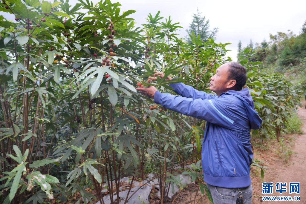 在贺州市钟山县两安瑶族乡,钟山县兴成中药材种植合作社负责人廖敬华正在查看五指毛桃长势。该合作社聚焦五指毛桃等中药材种植,采用“公司+合作社+基地+农户+市场”的经营模式,构建了从育苗到采收的全链条。“基地免费向农户传授种植技术,承诺保底收购,带动周边农户共同增收。”廖敬华说,在其示范带动下,两安瑶族乡及邻近区域群众积极加入种植行列,形成“一户带一片、一片带一村”的富民效应。