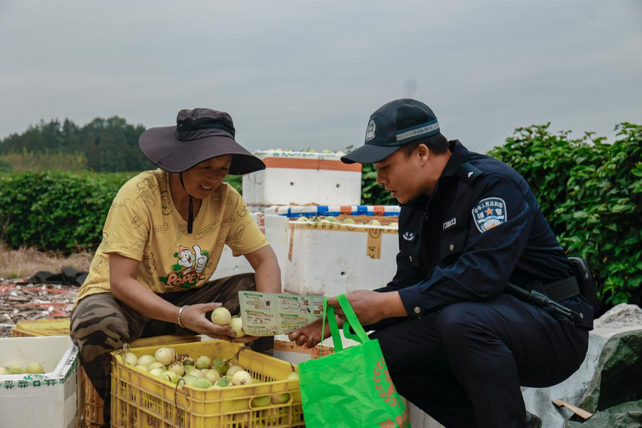 丰收季,派出所民警、辅警与村级治安志愿者组成宣传小分队,利用农闲时间深入各个果园,通过拉家常、发资料、讲案例等通俗易懂的方式,开展针对性宣传。派出所在果园周边、产销要道张贴了警示标语316条、设置安全提示牌28块,发放安全手册1600余份,把安全知识送到了田间地头。