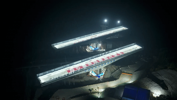 12月12日凌晨,经过1个多小时的持续作业,广西永柳高速关键控制性工程——跨衡柳铁路线特大桥利用铁路“天窗期”成功实施转体。