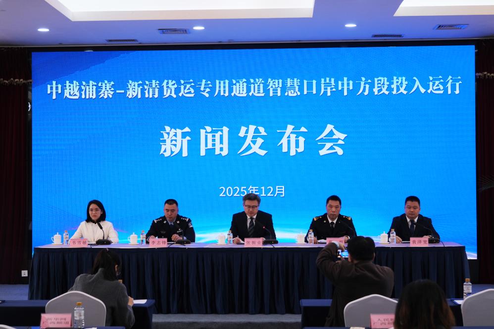 新华网南宁12月17日电(陈燕)17日,中越浦寨-新清货运专用通道智慧口岸中方段投入运行新闻发布会在广西南宁举行。会议宣布,中越浦寨-新清货运专用通道智慧口岸中方段已完成无人驾驶集装箱运输卡车(简称“无人集卡”)通关业务全流程梳理与核心技术验证,将于12月19日投入运行。