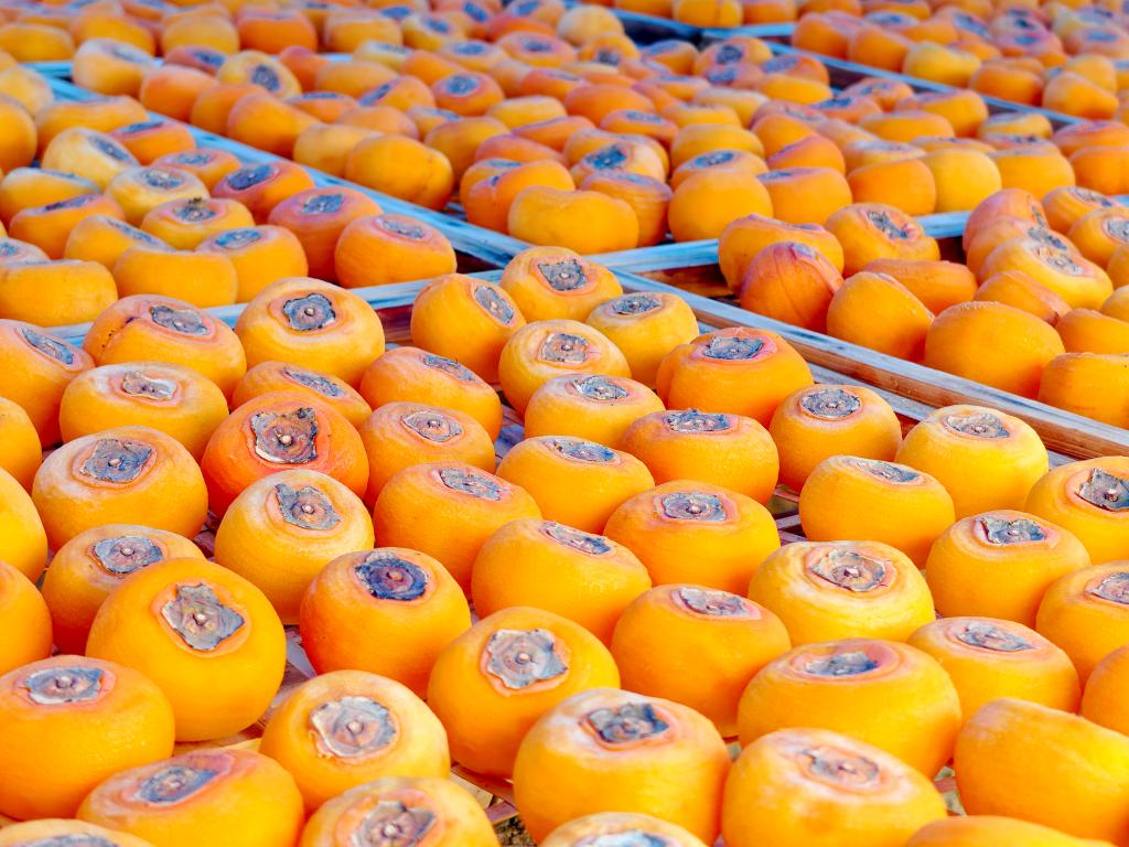 ↑2025年12月13日,在广西桂林市平乐县桥亭乡显堆村拍摄的农民晾晒的柿子。CICPHOTO/谭克兴 摄