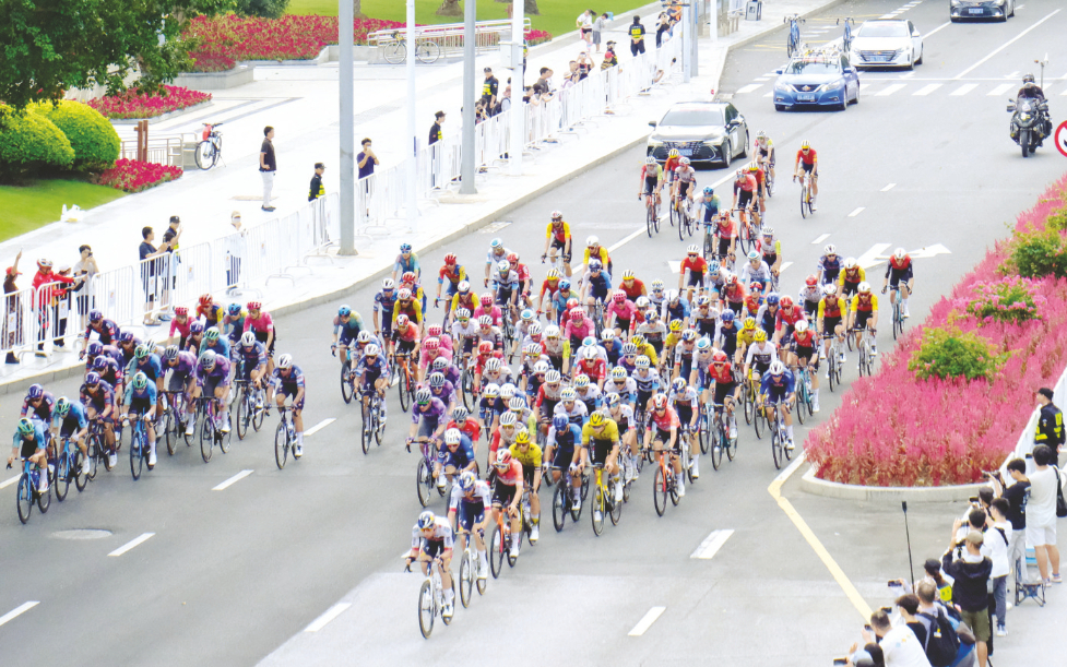 南宁通过赛事将“流量”转变为游客的“留量”。图为2025环广西公路自行车世界巡回赛中,车手驶入南宁市区。记者宋延康 摄