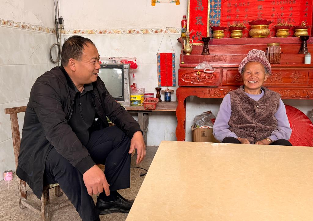 12月9日,周昌战在百坭村村民家中交流。新华社记者雷嘉兴 摄