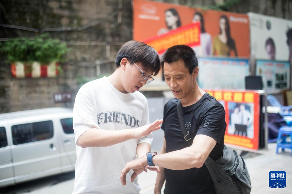 高考结束后挑着沉甸甸的行囊走在回家路上