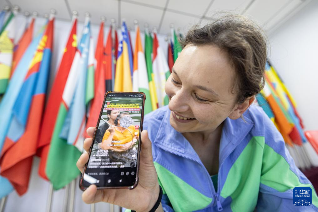俄罗斯姑娘莎河娜斯在浙江绍兴毕业旅行