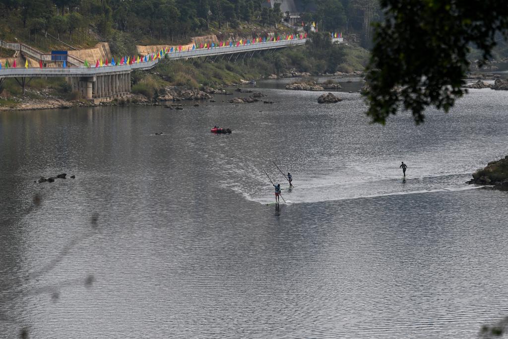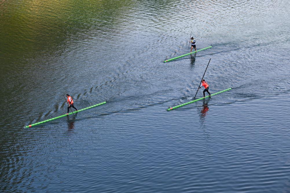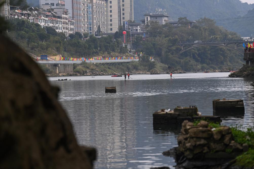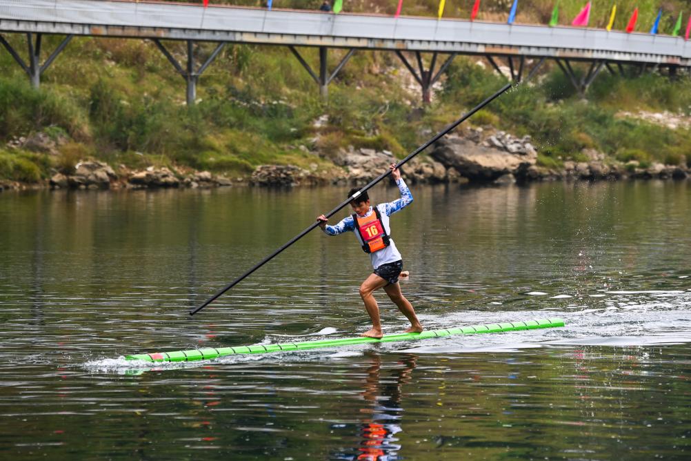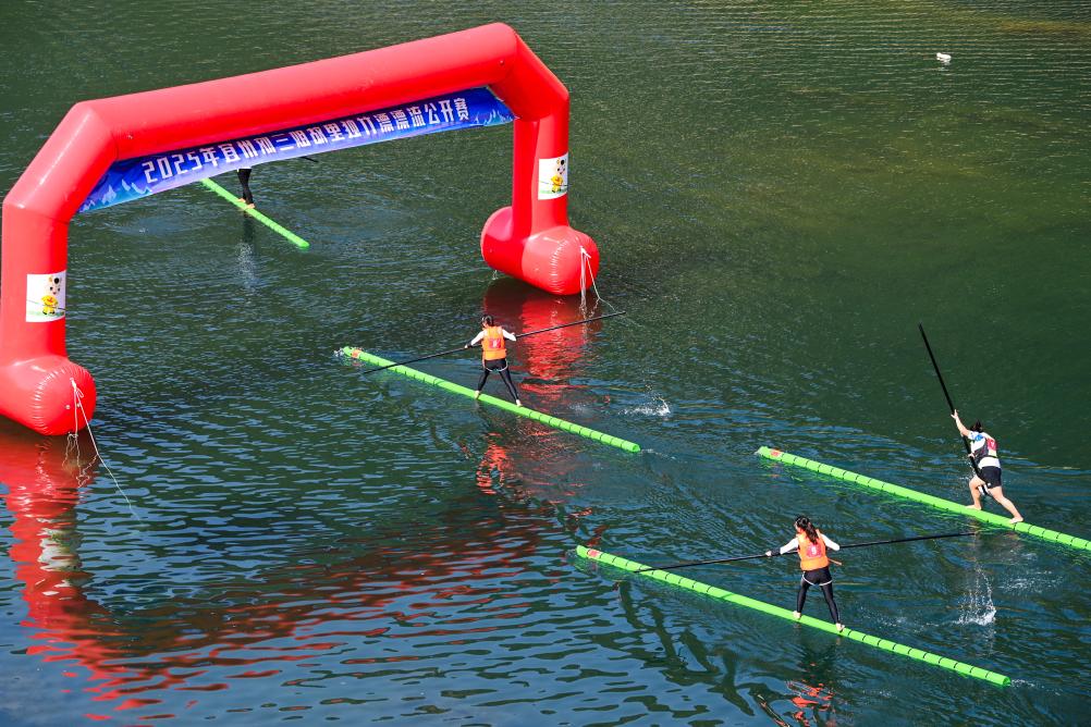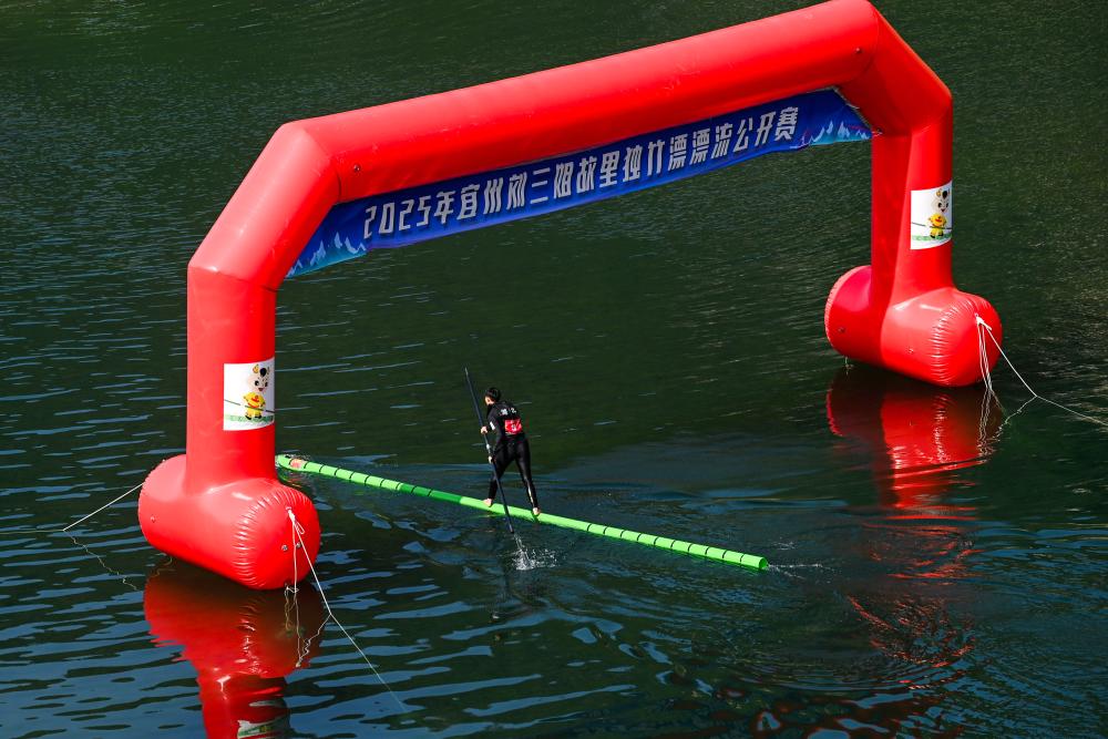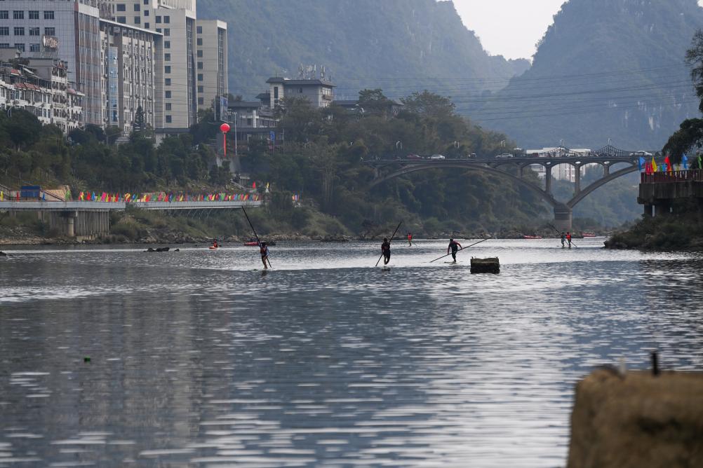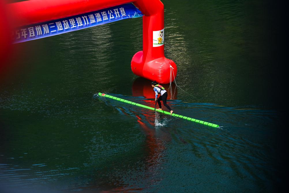 日前,2025年宜州刘三姐故里独竹漂漂流公开赛在广西河池市宜州区龙江河流域举行。本次赛事共吸引来自广西、河北、贵州等5个省区9支队伍参赛。