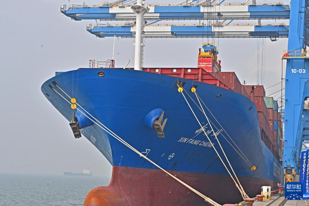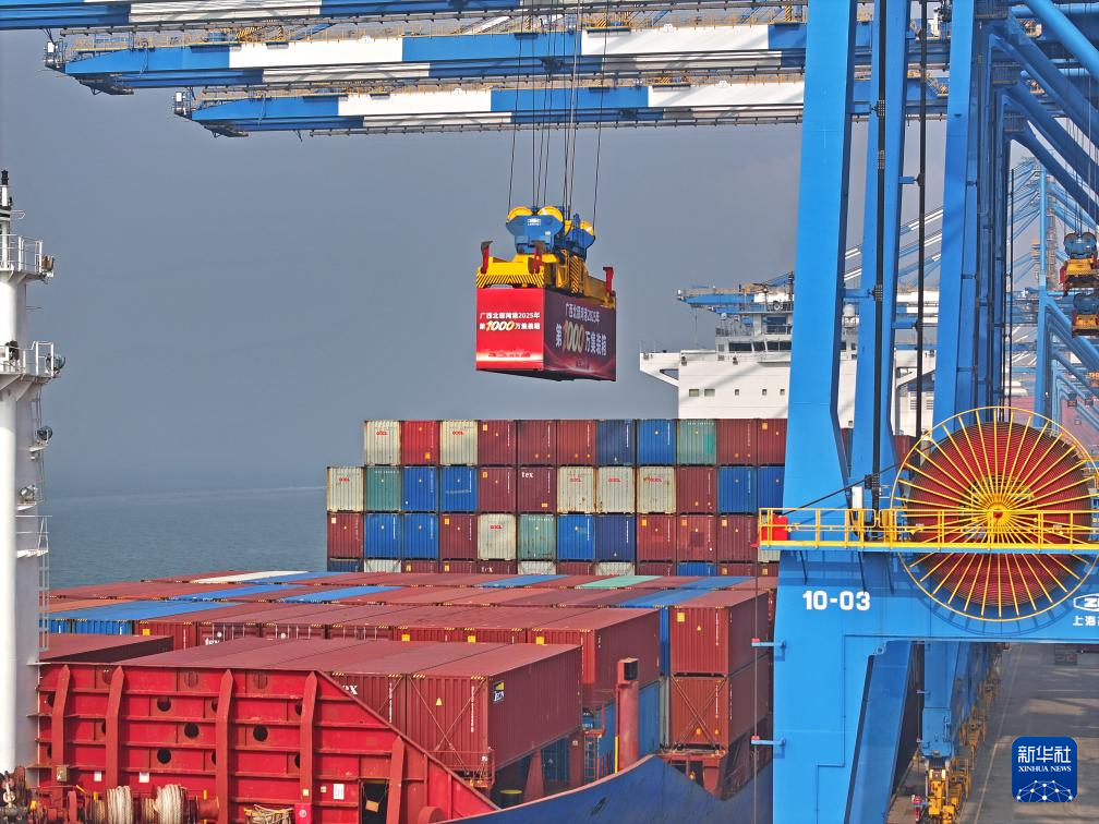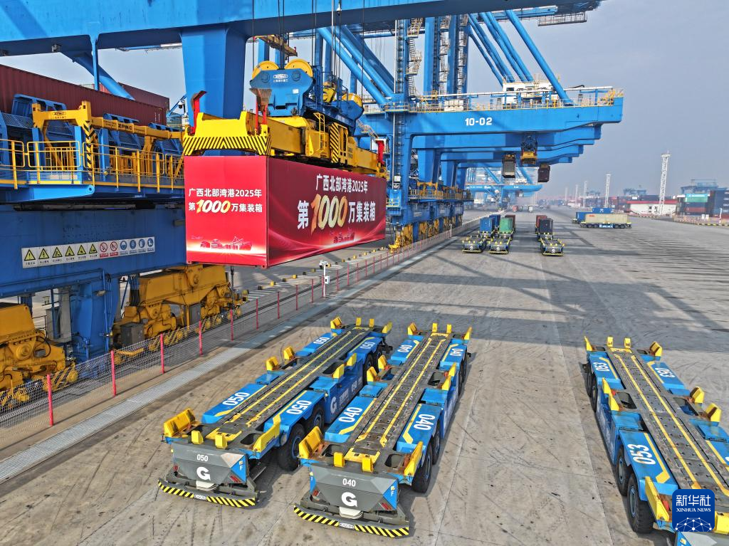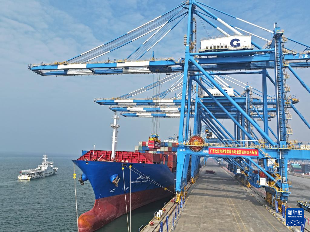 12月30日,随着第1000万个集装箱被平稳吊装到“新防城”轮上,广西北部湾港宣告成功迈入千万标箱大港行列。从2017年的228万标箱到如今突破千万标箱,北部湾港集装箱吞吐量年均增长超20%。同时,北部湾港第100条集装箱航线——柬埔寨贡布航线船舶首航,西部陆海新通道第10218列铁海联运班列发车。这标志着北部湾国际门户港、国际枢纽海港建设取得重大进展。