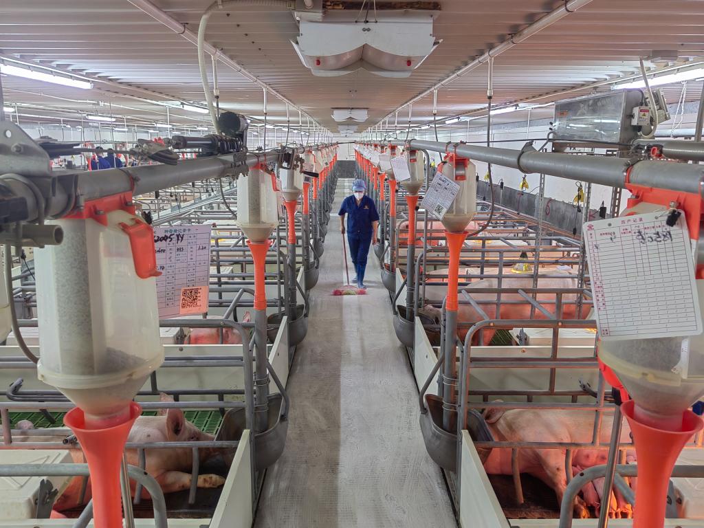 图为广西雄桂种猪有限公司工作人员在清洁养殖基地。(受访对象供图)