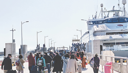 冬日里,游客乘船去往温暖的涠洲岛。 记者何兴强/摄