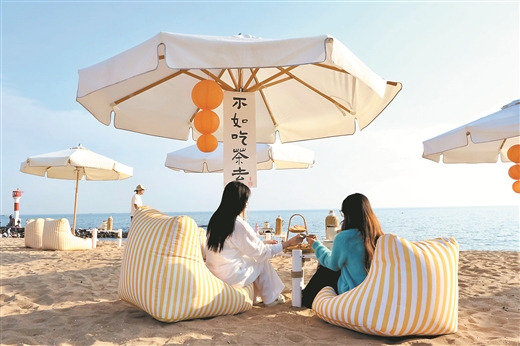 广旅·白沙湾国际康旅度假区围绕“滨海冬日奇趣”主题,推出海岸徒步、沙滩露营、围炉煮茶等项目,并融合潮流演艺、滨海烟花等活动,为游客打造多样的滨海体验,深受年轻游客青睐。“白天徒步观海,夜晚欣赏演出,入住临海别墅,体验感超好,我们还多玩了两天。”重庆游客肖女士表示。