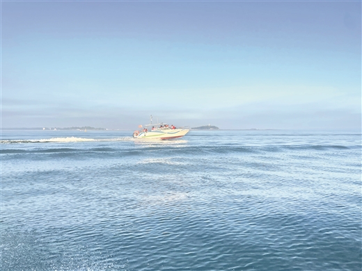 游客在钦州三娘湾乘船出海观豚。董志鹏/摄