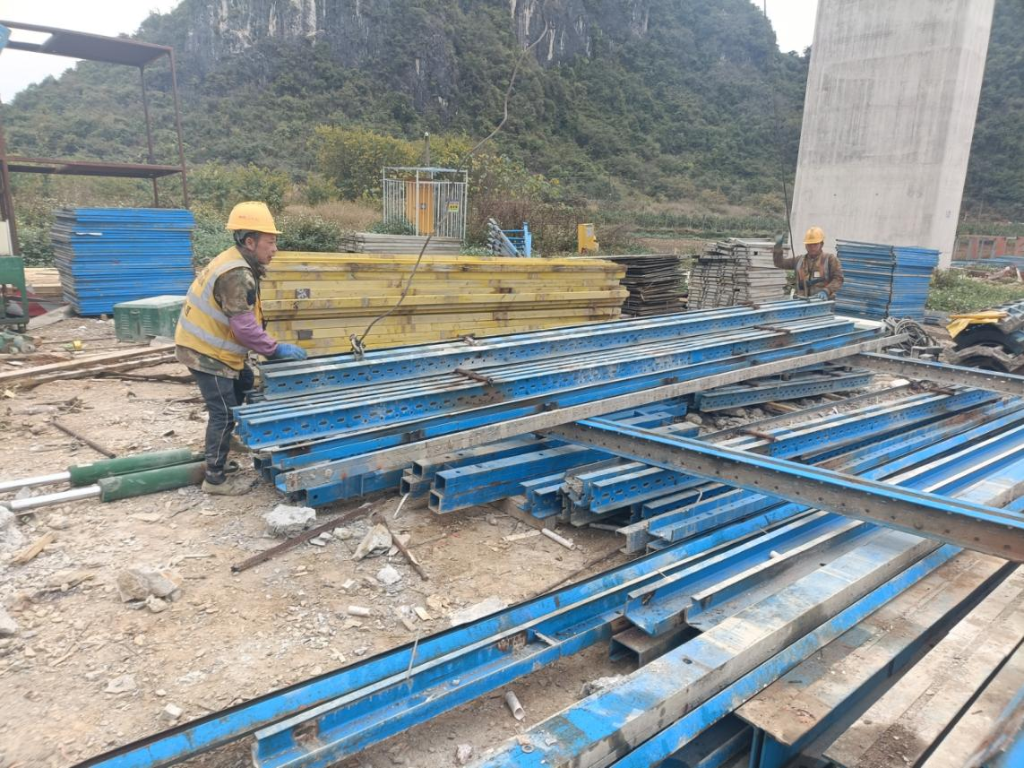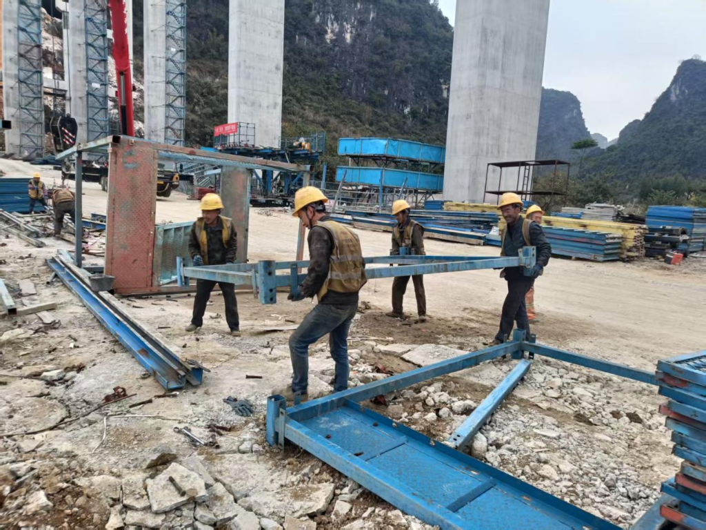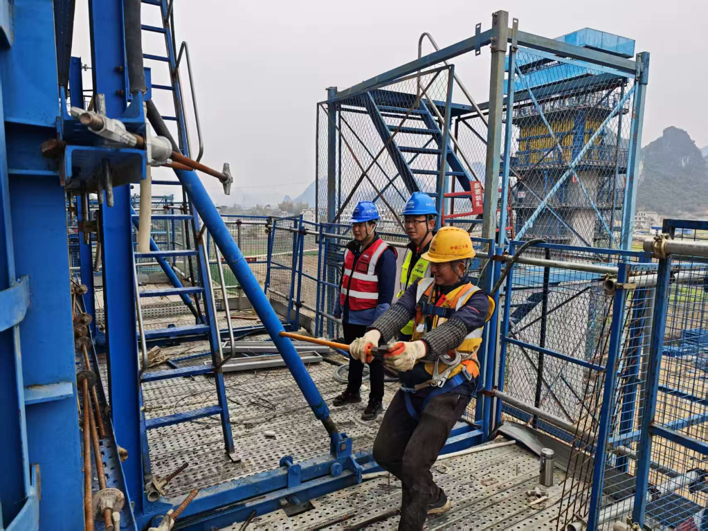 中铁二十局建设者在鱼宜高速项目现场施工作业